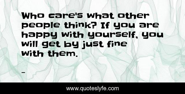 This page presents the quote "Who care's what other people think? If you are happy with yourself, you will get by just fine with them.". Author of this quote is . .