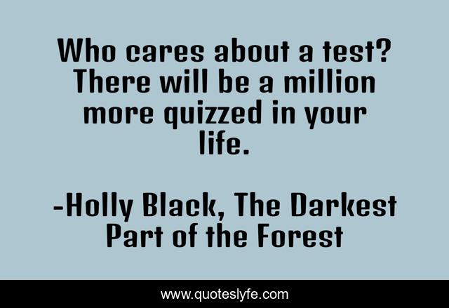 "Holly Black, The Darkest Part of the Forest Quotes." Quoteslyfe.com, 2025. Sun. 07 Dec. 2025. <https://www.quoteslyfe.com/quote/Who-cares-about-a-test-There-will-188558>.