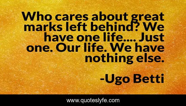 This page presents the quote "Who cares about great marks left behind? We have one life.... Just one. Our life. We have nothing else.". Author of this quote is Ugo Betti. .