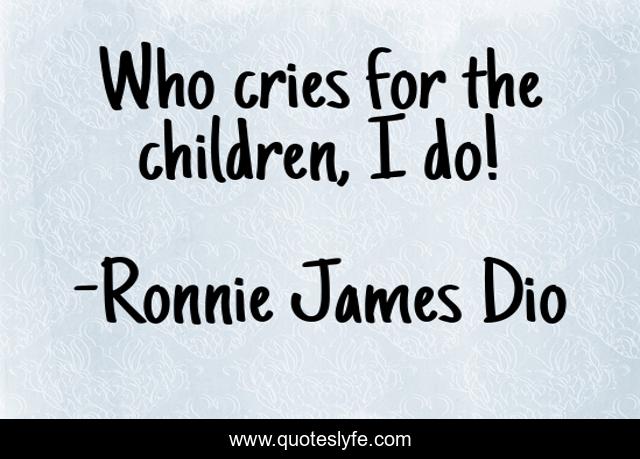 This page presents the quote "Who cries for the children, I do!". Author of this quote is Ronnie James Dio. This quote is about crying, children, dio-is-god,.