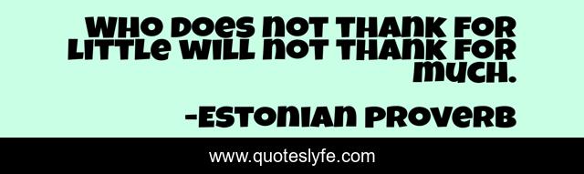 This page presents the quote "Who does not thank for little will not thank for much.". Author of this quote is Estonian proverb. .