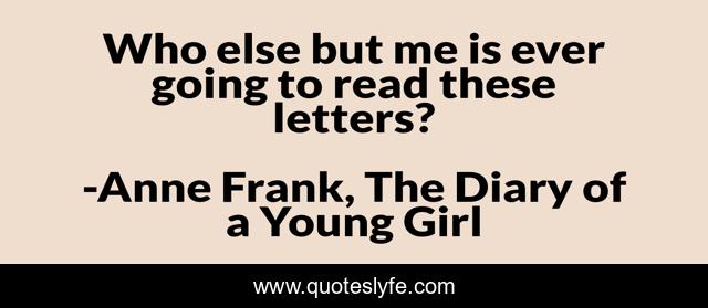 This page presents the quote "Who else but me is ever going to read these letters?". Author of this quote is Anne Frank, The Diary of a Young Girl. This quote is about irony, diary, innocence,.