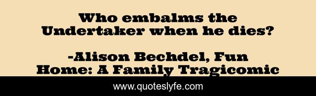 "Alison Bechdel, Fun Home: A Family Tragicomic Quotes." Quoteslyfe.com, 2025. Sun. 07 Dec. 2025. <https://www.quoteslyfe.com/quote/Who-embalms-the-Undertaker-when-he-dies-22026>.