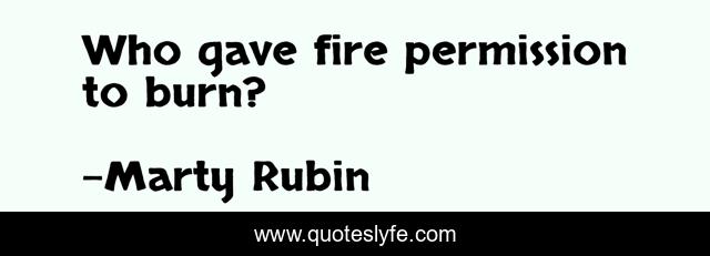 This page presents the quote "Who gave fire permission to burn?". Author of this quote is Marty Rubin. This quote is about being, fire, burning, permission,.