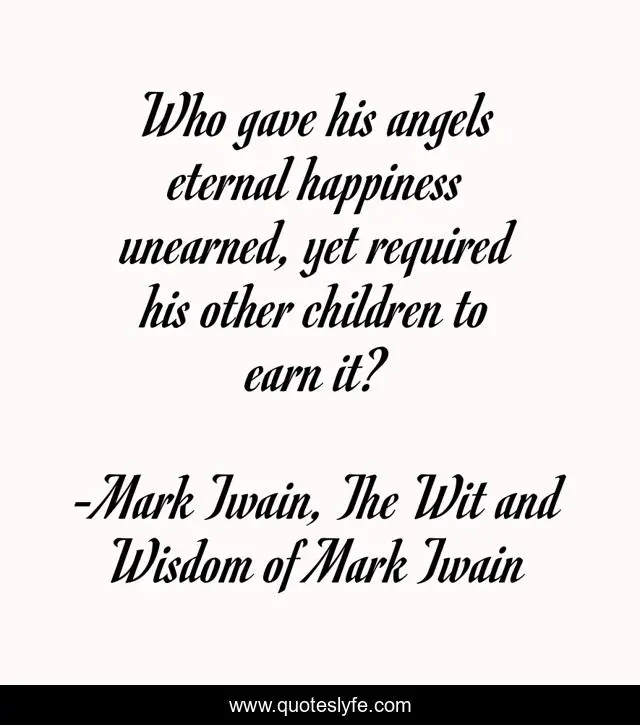 "Mark Twain, The Wit and Wisdom of Mark Twain Quotes." Quoteslyfe.com, 2025. Sat. 06 Dec. 2025. <https://www.quoteslyfe.com/quote/Who-gave-his-angels-eternal-happiness-unearned-219595>.