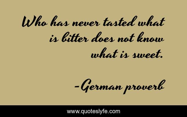 This page presents the quote "Who has never tasted what is bitter does not know what is sweet.". Author of this quote is German proverb. This quote is about victories, worthy,.