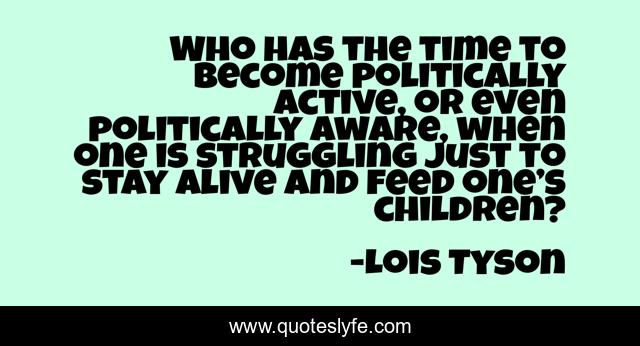 This page presents the quote "Who has the time to become politically active, or even politically aware, when one is struggling just to stay alive and feed one’s children?". Author of this quote is Lois Tyson. This quote is about marxism, america, marxist, class-system,.