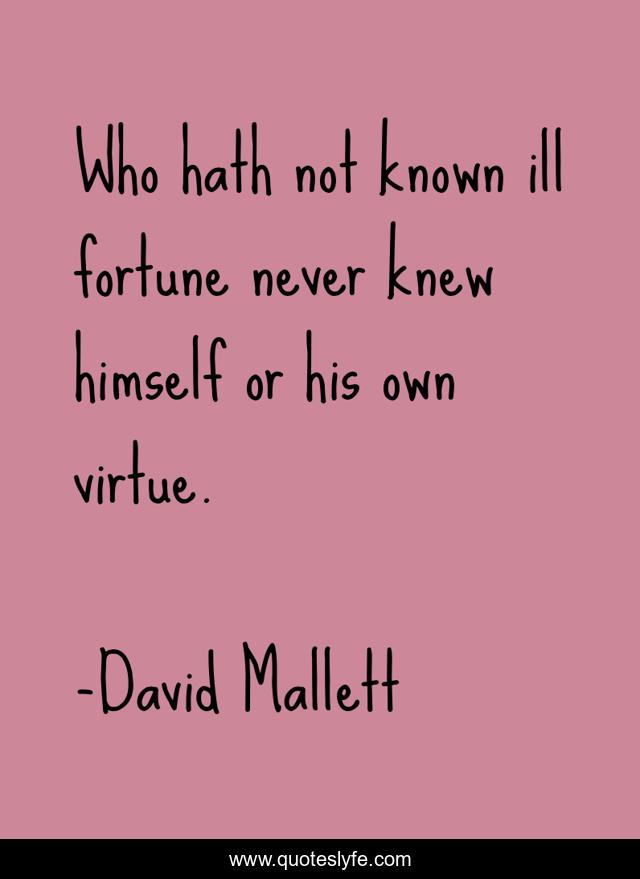 "David Mallett Quotes." Quoteslyfe.com, 2025. Sat. 06 Dec. 2025. <https://www.quoteslyfe.com/quote/Who-hath-not-known-ill-fortune-never-259823>.