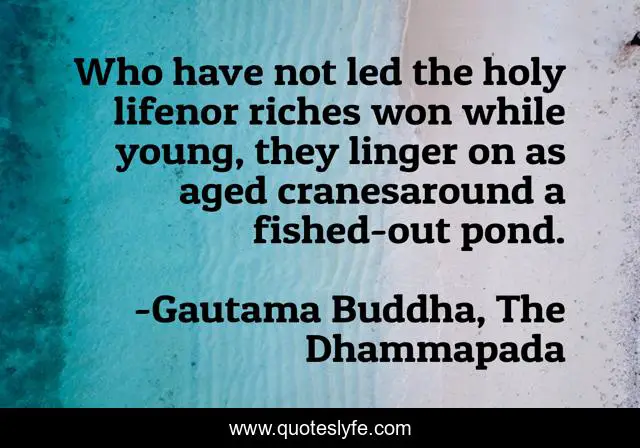 This page presents the quote "Who have not led the holy lifenor riches won while young, they linger on as aged cranesaround a fished-out pond.". Author of this quote is Gautama Buddha, The Dhammapada. .
