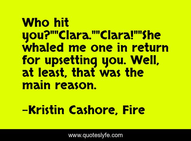 "Kristin Cashore, Fire Quotes." Quoteslyfe.com, 2025. Mon. 08 Dec. 2025. <https://www.quoteslyfe.com/quote/Who-hit-you-Clara-Clara-She-whaled-251530>.