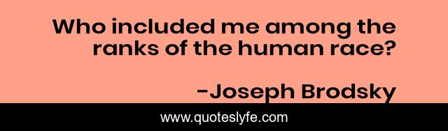 This page presents the quote "Who included me among the ranks of the human race?". Author of this quote is Joseph Brodsky. This quote is about me, human race, human,.