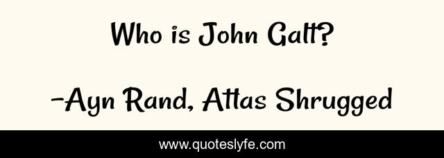 This page presents the quote "Who is John Galt?". Author of this quote is Ayn Rand, Atlas Shrugged. This quote is about galt, first-lines, taggart, objectivism, opening-lines, philosophy,.