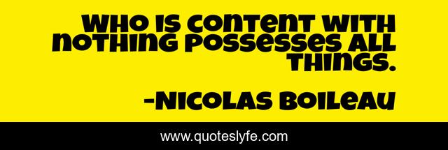 This page presents the quote "Who is content with nothing possesses all things.". Author of this quote is Nicolas Boileau. .