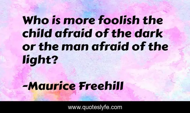 This page presents the quote "Who is more foolish the child afraid of the dark or the man afraid of the light?". Author of this quote is Maurice Freehill. This quote is about ways, fear, overcome,.