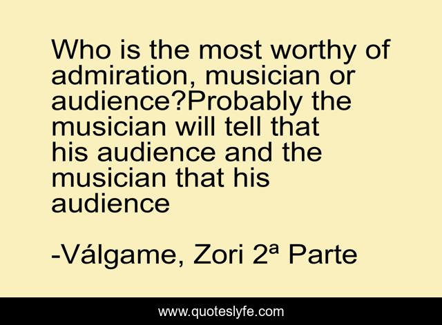 This page presents the quote "Who is the most worthy of admiration, musician or audience?Probably the musician will tell that his audience and the musician that his audience". Author of this quote is Válgame, Zori 2ª Parte. This quote is about society, musician, literature,.