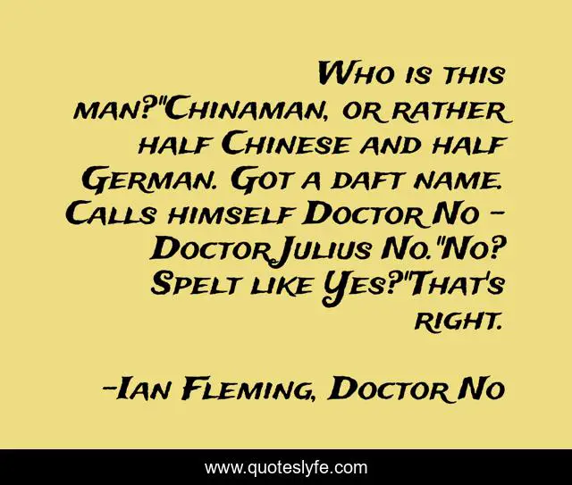 "Ian Fleming, Doctor No Quotes." Quoteslyfe.com, 2025. Fri. 05 Dec. 2025. <https://www.quoteslyfe.com/quote/Who-is-this-man-Chinaman-or-rather-157691>.