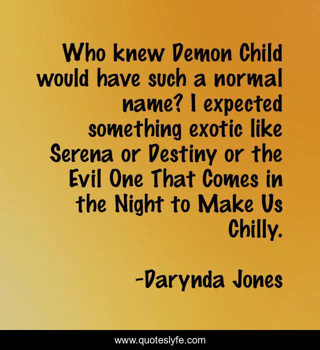 This page presents the quote "Who knew Demon Child would have such a normal name? I expected something exotic like Serena or Destiny or the Evil One That Comes in the Night to Make Us Chilly.". Author of this quote is Darynda Jones. This quote is about witty, funny, humor, snarky, comedy,.