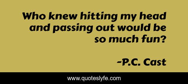 This page presents the quote "Who knew hitting my head and passing out would be so much fun?". Author of this quote is P.C. Cast. This quote is about fun, funny, comedy, humor, marked,.