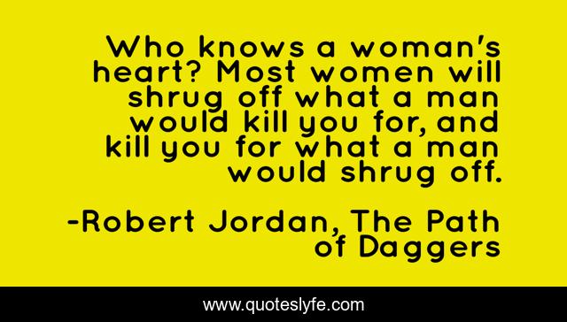 "Robert Jordan, The Path of Daggers Quotes." Quoteslyfe.com, 2025. Tue. 09 Dec. 2025. <https://www.quoteslyfe.com/quote/Who-knows-a-woman-s-heart-Most-58923>.