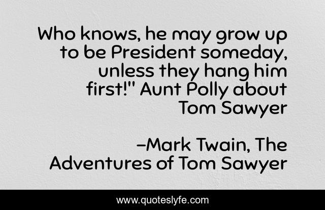 Who knows, he may grow up to be President someday, unless they hang him first!" Aunt Polly about Tom Sawyer