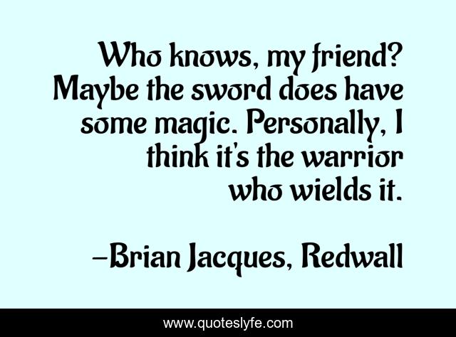 "Brian Jacques, Redwall Quotes." Quoteslyfe.com, 2025. Fri. 05 Dec. 2025. <https://www.quoteslyfe.com/quote/Who-knows-my-friend-Maybe-the-sword-134183>.