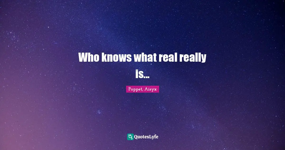 "Poppet, Aisyx Quotes." Quoteslyfe.com, 2025. Thu. 25 Dec. 2025. <https://www.quoteslyfe.com/quote/Who-knows-what-real-really-is-132579>.