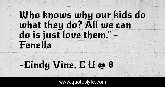"Cindy Vine, C U @ 8 Quotes." Quoteslyfe.com, 2025. Sat. 06 Dec. 2025. <https://www.quoteslyfe.com/quote/Who-knows-why-our-kids-do-what-181892>.