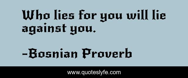 "Bosnian Proverb Quotes." Quoteslyfe.com, 2025. Mon. 08 Dec. 2025. <https://www.quoteslyfe.com/quote/Who-lies-for-you-will-lie-against-167741>.
