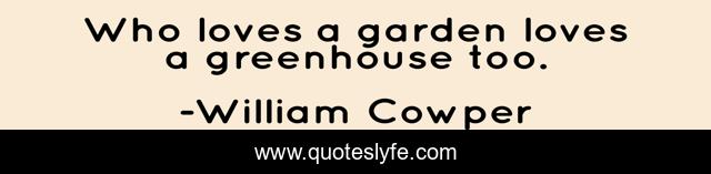 This page presents the quote "Who loves a garden loves a greenhouse too.". Author of this quote is William Cowper. This quote is about garden, too,.