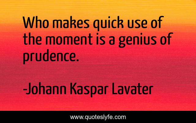 This page presents the quote "Who makes quick use of the moment is a genius of prudence.". Author of this quote is Johann Kaspar Lavater. .