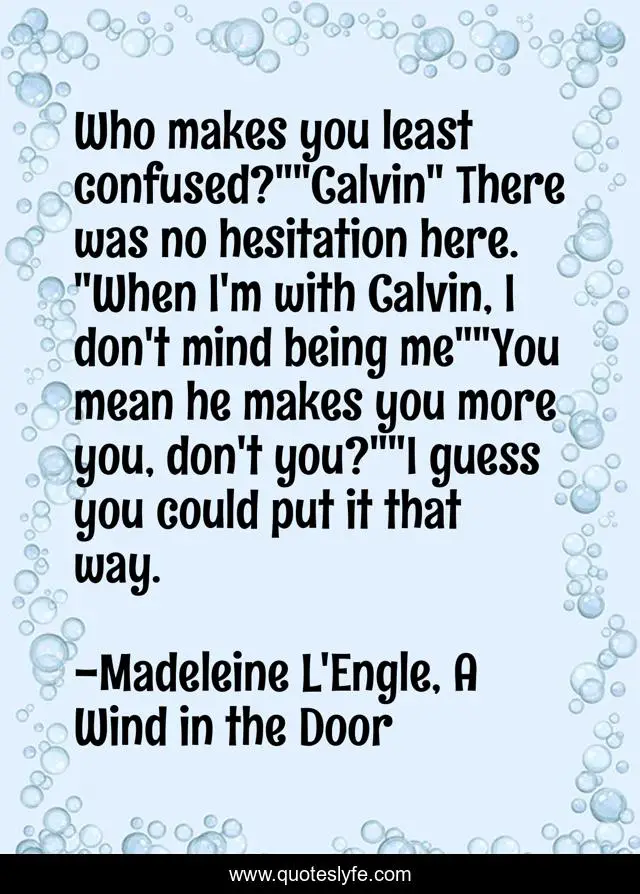 "Madeleine L'Engle, A Wind in the Door Quotes." Quoteslyfe.com, 2025. Sat. 06 Dec. 2025. <https://www.quoteslyfe.com/quote/Who-makes-you-least-confused-Calvin-There-50841>.