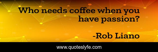 This page presents the quote "Who needs coffee when you have passion?". Author of this quote is Rob Liano. This quote is about life, positive, energy, motivational, confidence, live, passion, goals, inspirational,.