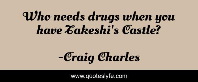 This page presents the quote "Who needs drugs when you have Takeshi's Castle?". Author of this quote is Craig Charles. This quote is about drugs, japan, game-show,.