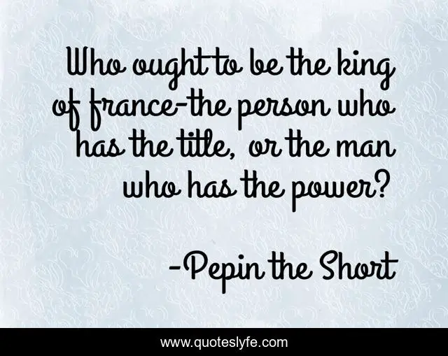 This page presents the quote "Who ought to be the king of france-the person who has the title, or the man who has the power?". Author of this quote is Pepin the Short. This quote is about king, france, power, title,.