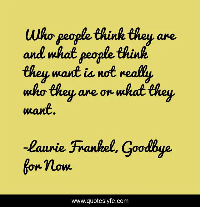 This page presents the quote "Who people think they are and what people think they want is not really who they are or what they want.". Author of this quote is Laurie Frankel, Goodbye for Now. This quote is about desire, self-perception,.