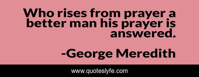 This page presents the quote "Who rises from prayer a better man his prayer is answered.". Author of this quote is George Meredith. .