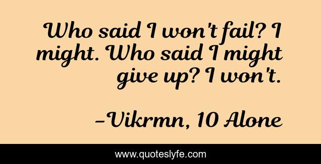 This page presents the quote "Who said I won't fail? I might. Who said I might give up? I won't.". Author of this quote is Vikrmn, 10 Alone. This quote is about gwg, vikram, positive, motivational, confidence, ca-vikram-verma, guru-with-guitar, vikrmn, optimistic,.