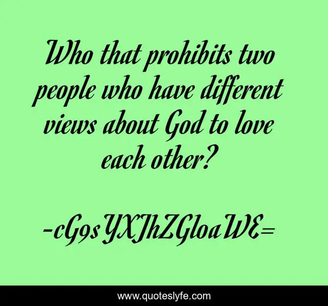This page presents the quote "Who that prohibits two people who have different views about God to love each other?". Author of this quote is cG9sYXJhZGl0aWE=. This quote is about god, life, love, affection, views,.