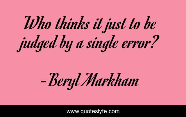This page presents the quote "Who thinks it just to be judged by a single error?". Author of this quote is Beryl Markham. This quote is about failures, mistakes,.