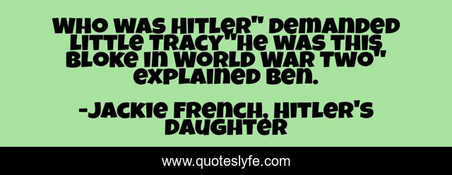 "Jackie French, Hitler's Daughter Quotes." Quoteslyfe.com, 2025. Sat. 06 Dec. 2025. <https://www.quoteslyfe.com/quote/Who-was-Hitler-demanded-little-Tracy-He-52928>.