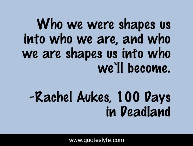 "Rachel Aukes, 100 Days in Deadland Quotes." Quoteslyfe.com, 2025. Mon. 08 Dec. 2025. <https://www.quoteslyfe.com/quote/Who-we-were-shapes-us-into-who-175334>.