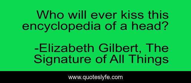 "Elizabeth Gilbert, The Signature of All Things Quotes." Quoteslyfe.com, 2025. Mon. 08 Dec. 2025. <https://www.quoteslyfe.com/quote/Who-will-ever-kiss-this-encyclopedia-of-214842>.