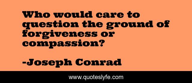 This page presents the quote "Who would care to question the ground of forgiveness or compassion?". Author of this quote is Joseph Conrad. .