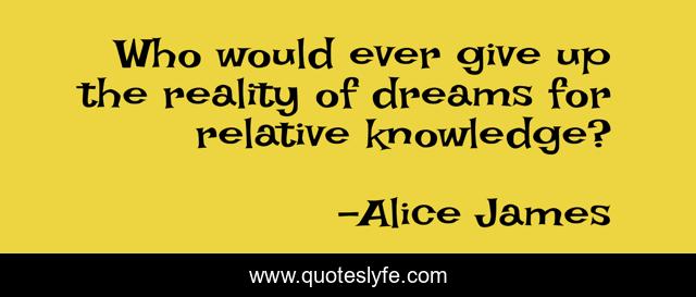 This page presents the quote "Who would ever give up the reality of dreams for relative knowledge?". Author of this quote is Alice James. .