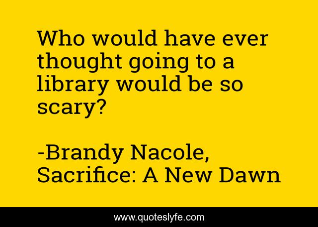This page presents the quote "Who would have ever thought going to a library would be so scary?". Author of this quote is Brandy Nacole, Sacrifice: A New Dawn. This quote is about funny, scary, quote, racquel, comedy, thoughts,.