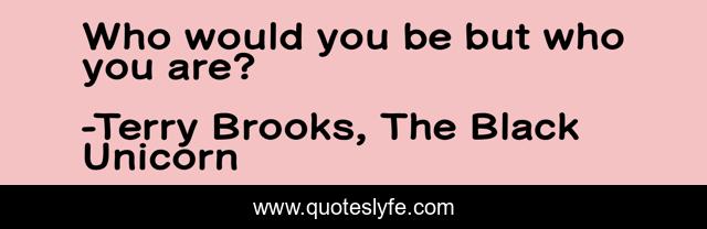 This page presents the quote "Who would you be but who you are?". Author of this quote is Terry Brooks, The Black Unicorn. This quote is about empowering, fantasy, individualism,.