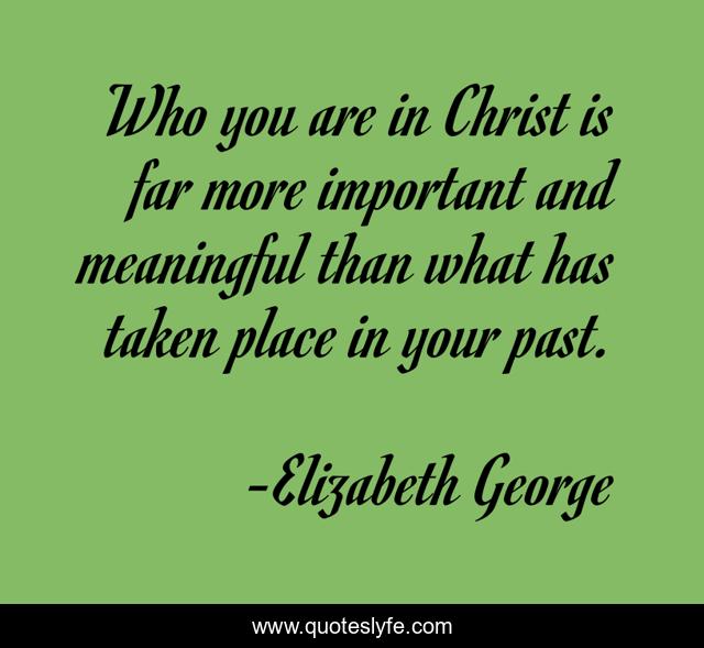 This page presents the quote "Who you are in Christ is far more important and meaningful than what has taken place in your past.". Author of this quote is Elizabeth George. This quote is about faith, christian, god, daily, walk, past, important, future, meaningful,.