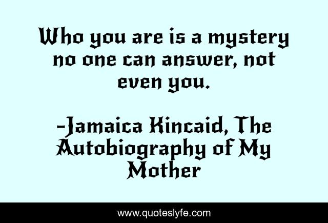 "Jamaica Kincaid, The Autobiography of My Mother Quotes." Quoteslyfe.com, 2025. Mon. 08 Dec. 2025. <https://www.quoteslyfe.com/quote/Who-you-are-is-a-mystery-no-146687>.