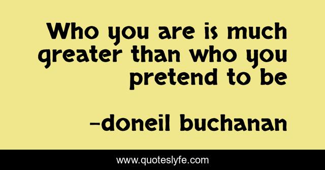 This page presents the quote "Who you are is much greater than who you pretend to be". Author of this quote is doneil buchanan. This quote is about enthusiasm, great, inspirational,.