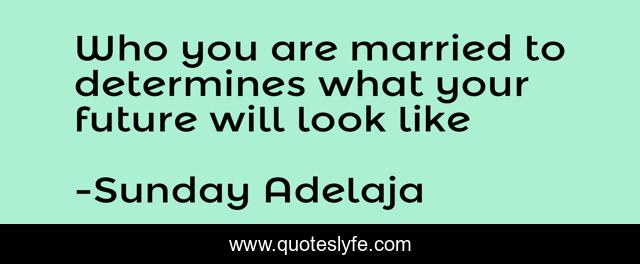 This page presents the quote "Who you are married to determines what your future will look like". Author of this quote is Sunday Adelaja. This quote is about future, determines, married,.